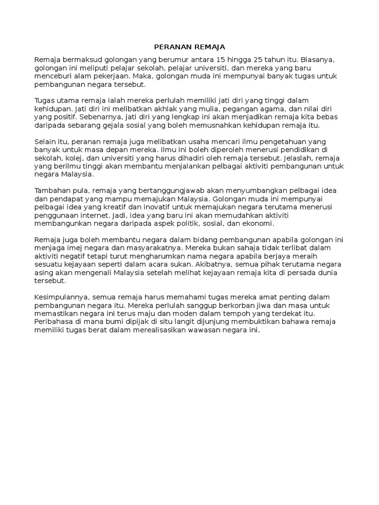 Contoh Karangan Bahasa Melayu Spm Peranan Remaja Dalam Membangunkan Dan Memajukan Negara Ini Docx Contoh Karangan Bahasa Melayu Spm Peranan Remaja Course Hero